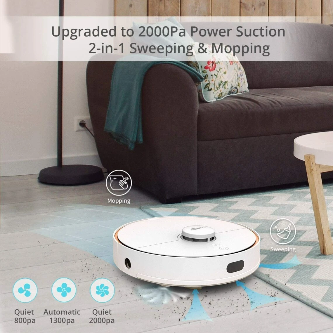- [COORDINATION DE PLUSIEURS CAPTEURS] les capteurs anti-collision empêchent les dommages aux meubles, les empêchent de se coincer sous les meubles dans les espaces restreints et passent facilement sur les draps ou les rideaux. Des capteurs anti-chute empêchent l’aspirateur de tomber. Le capteur mural nettoie les coins et les murs.